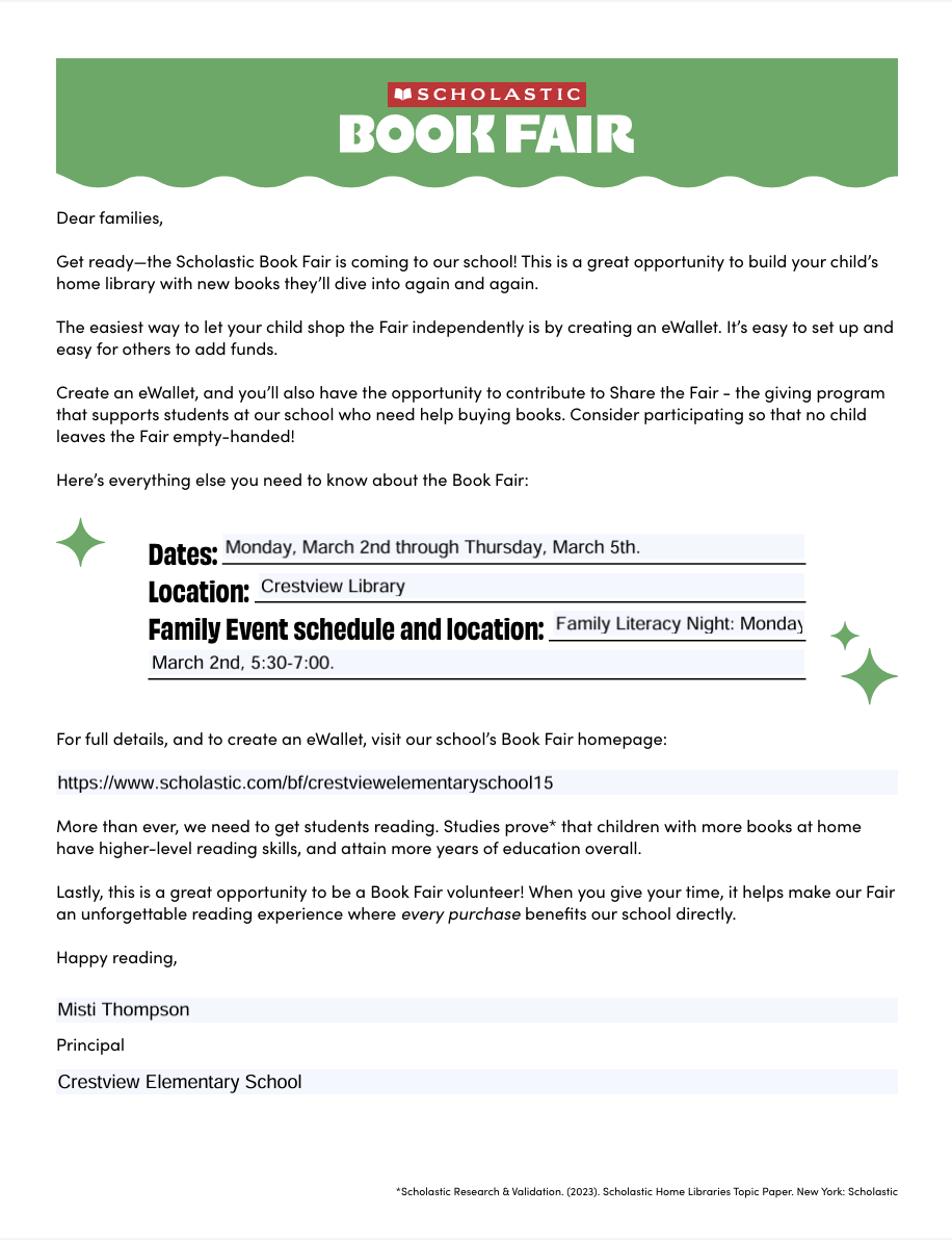 Scholastic Book Fair Information & Creating an eWallet Scholastic Book Fair Information Create your child’s Scholastic Book Fair eWallet so they can shop cash-free, worry-free, and independently! It’s easy to set up and easy for others to contribute fu...