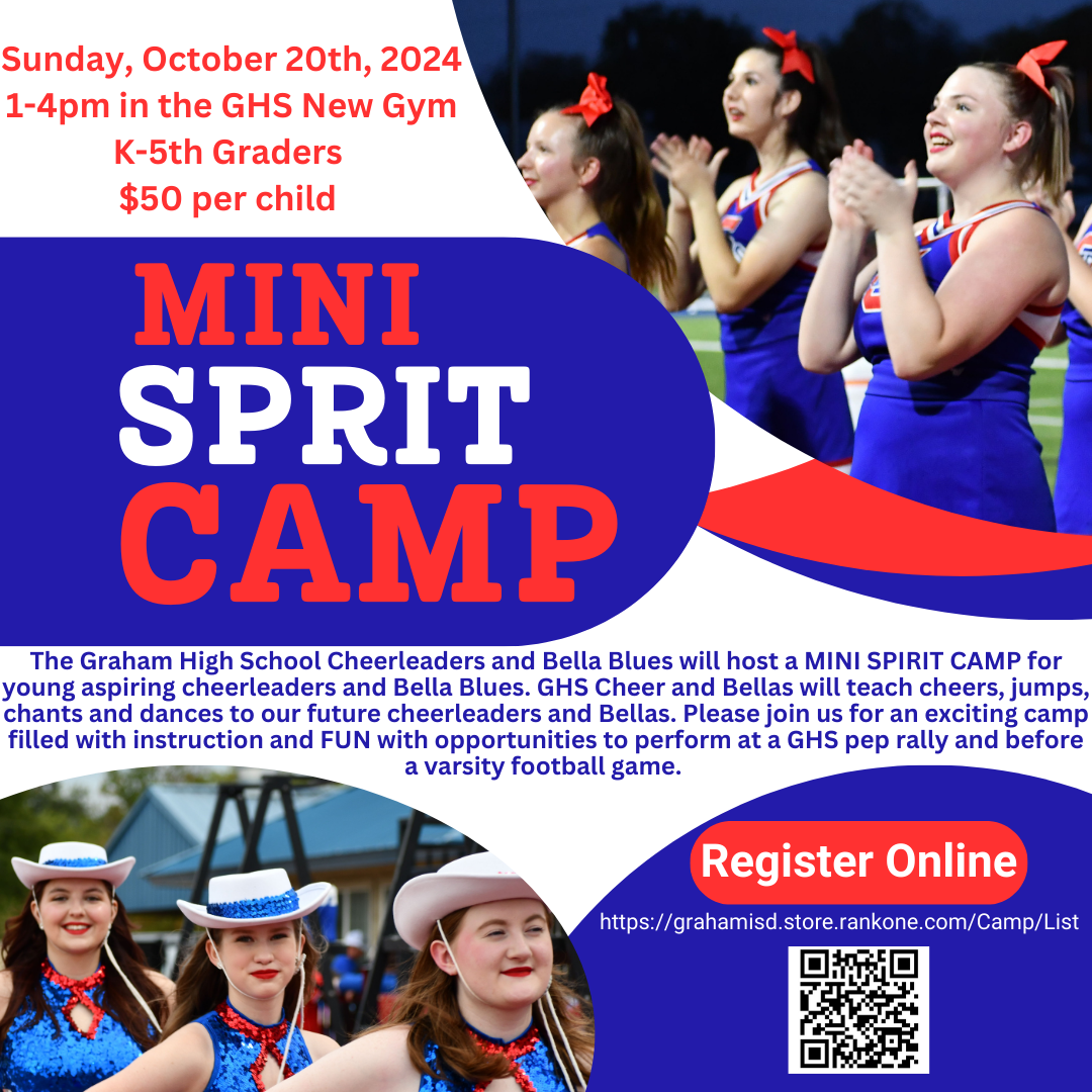 The GHS cheerleaders and Bella Blues will be having a Mini Spirit Camp on October 20th for K-5th graders. They must be signed up by October 2nd to be guaranteed a T-shirt.